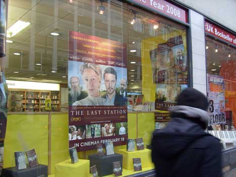 To περίφημο βιβλιοπωλείο Foyles στο κέντρο του Λονδίνου, στην Charing Cross, προβάλλει τον Τελευταίο σταθμό στις προθήκες του με την αφίσα της ταινίας όπου πρωταγωνιστεί η Έλεν Μίρεν και ο Κρίστοφερ Πλάμερ.