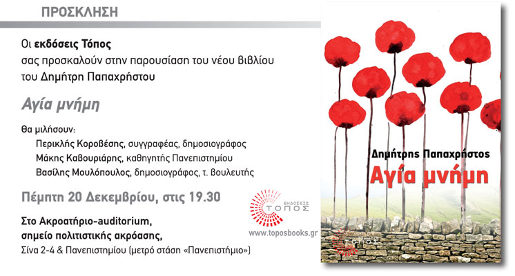::. "Αγία Μνήμη"- Παρουσίαση του βιβλίου του Δ. Παπαχρήστου στο Ακροατήριο (Πέμπτη 20 Δεκεμβρίου) (12-12-2012 12:47)