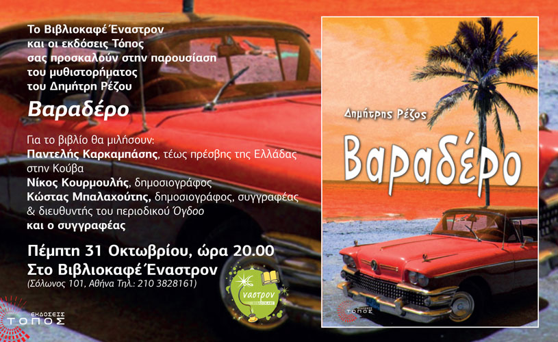::. "Βαραδέρο": Παρουσίαση του νέου μυθιστορήματος του Δημήτρη Ρέζου στο "Έναστρον" (Πέμπτη 31 Οκτωβρίου) (31-10-2013 11:48)