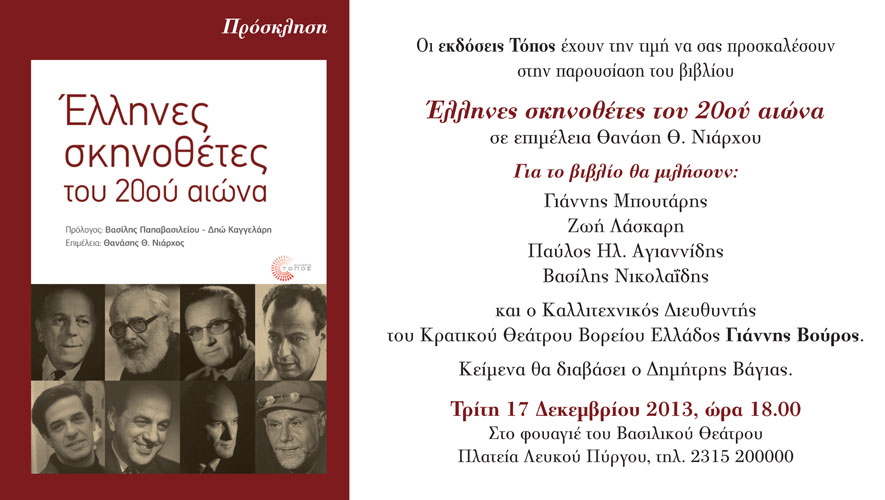 ::. ''Έλληνες σκηνοθέτες του 20ού αιώνα'': Παρουσίαση του βιβλίου στη Θεσσαλονίκη την Τρίτη 17 Δεκεμβρίου (16-12-2013 11:20)