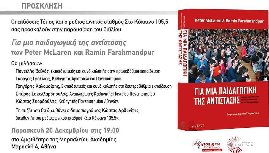 ::. "Για μια παιδαγωγική της αντίστασης'': Παρουσίαση την Παρασκευή 20 Δεκεμβρίου στο αμφιθέατρο της Μαρασλείου Ακαδημίας (18-12-2013 14:08)