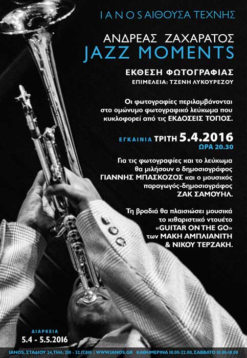 ::. ''Jazz Moments'': έκθεση φωτογραφίας του Ανδρέα Ζαχαράτου στην Αίθουσα Τέχνης IANOS (30-03-2016 17:29)