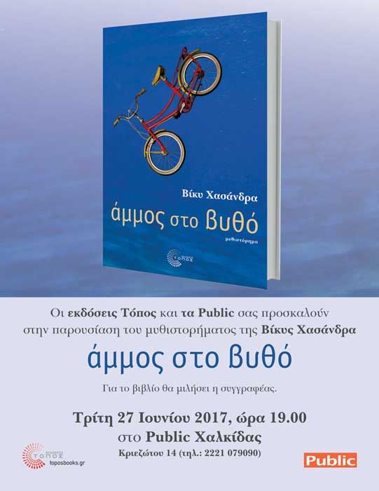 ::. "Άμμος στο βυθό": το νέο μυθιστόρημα της Βίκυς Χασάνδρα παρουσιάζεται στη Χαλκίδα την Τρίτη 27 Ιουνίου (20-06-2017 18:18)