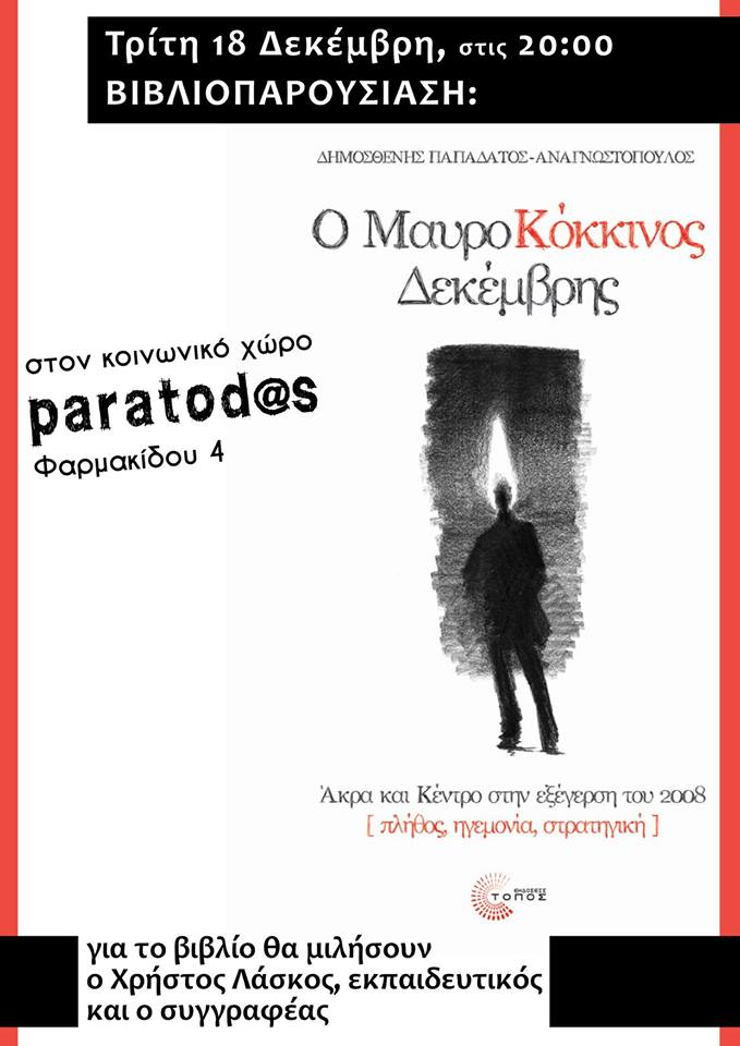 ::. Τρίτη 18 Δεκεμβρίου: "O Μαυροκόκκινος Δεκέμβρης" του Δημοσθένη Παπαδάτου-Αναγνωστόπουλου, παρουσίαση στη Λάρισα (κοινωνικό στέκι paratod@s) (18-12-2018 10:44)