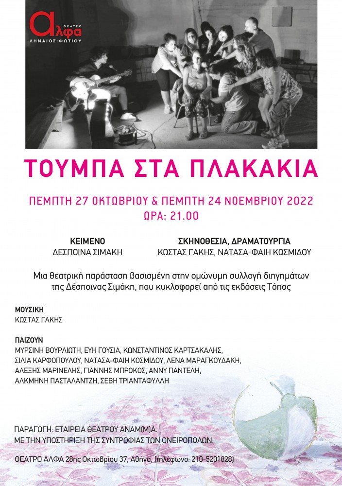 ::. «Τούμπα στα πλακάκια» για δύο παραστάσεις στο θέατρο Άλφα στις 27/10 και στις 24/11 (20-10-2022 17:04)