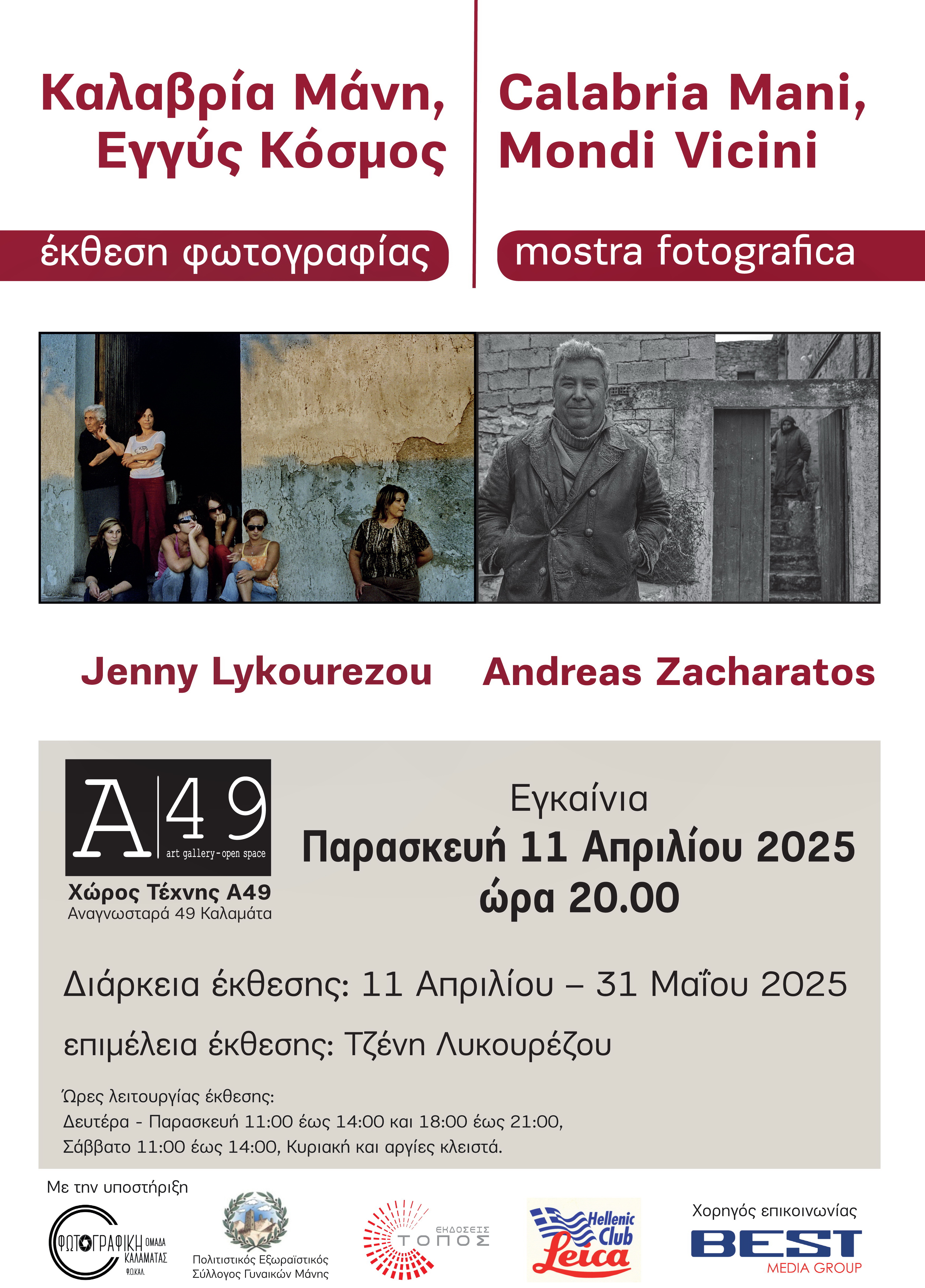 ::. ''Καλαβρία Μάνη, Εγγύς Κόσμος'' έκθεση φωτογραφίας στην Καλαμάτα, από το λεύκωμα των Τ. Λυκουρέζου & Α. Ζαχαράτου (28-03-2025 14:16)