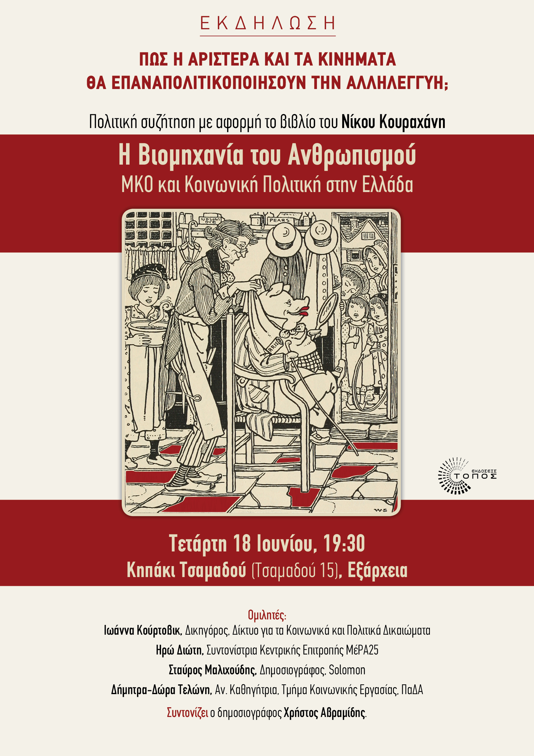 ::. Τετάρτη 18 Ιουνίου, Αθήνα: ''Πώς η Αριστερά και τα κινήματα θα επαναπολιτικοποιήσουν την αλληλεγγύη;'' εκδήλωση με αφορμή το νέο βιβλίο του Νίκου Κουραχάνη (11-06-2025 13:48)