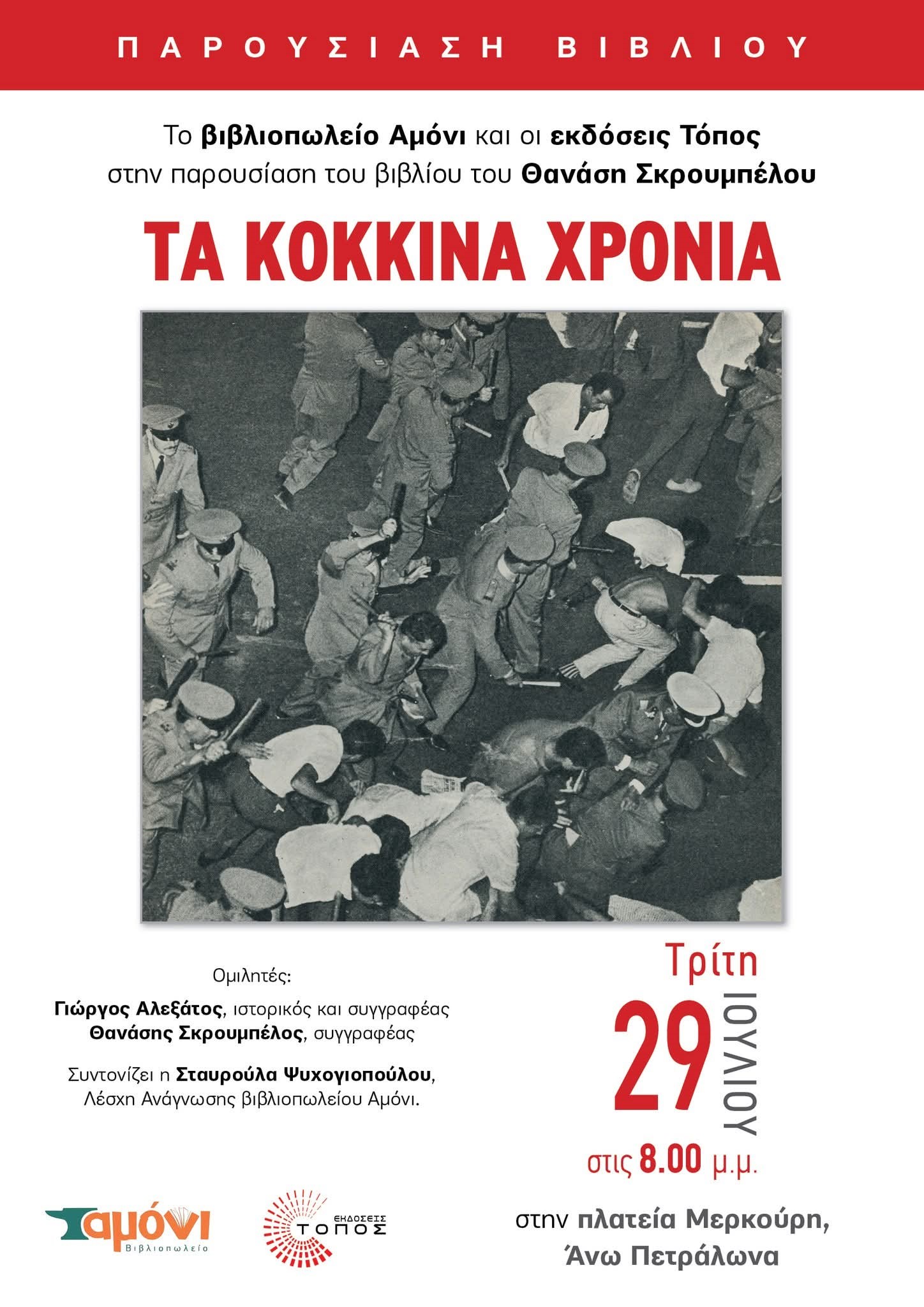 ::. Τρίτη 29/07 Πετράλωνα: "Τα κόκκινα χρόνια" παρουσίαση του νέου βιβλίου του Θανάση Σκρουμπέλου (24-07-2025 10:43)