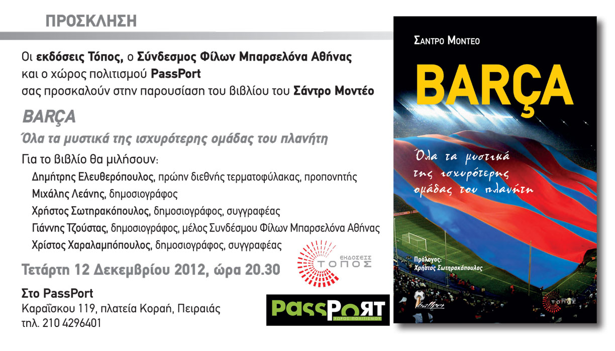 ::. "Barca": Παρουσίαση του βιβλίου στο PassPort (Τετάρτη 12 Δεκεμβρίου) (06-12-2012 13:18)