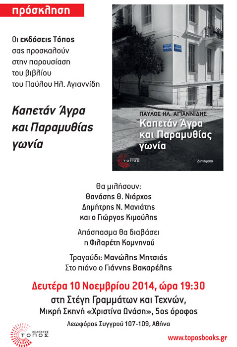 ::. ''Kαπετάν Άγρα και Παραμυθίας γωνία'': Παρουσίαση του βιβλίου την Δευτέρα 10 Νοεμβρίου στη Στέγη Γραμμάτων και Τεχνών (03-11-2014 14:42)