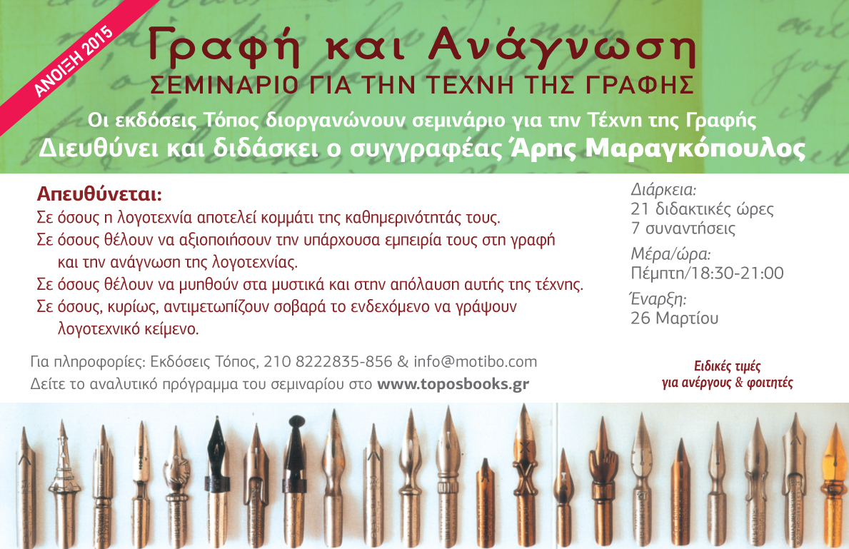 ::. ΓΡΑΦΗ & ΑΝΑΓΝΩΣΗ: Aνοιξιάτικο σεμινάριο 2015 για την τέχνη της γραφής (08-03-2015 12:28)