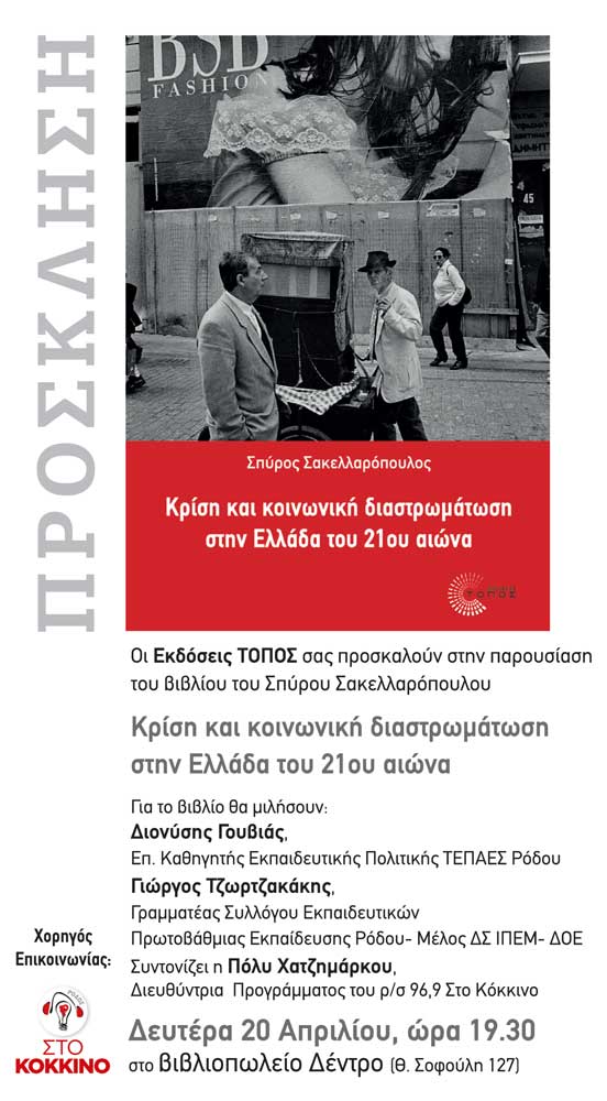 ::. ''Κρίση και κοινωνική διαστρωμάτωση στην Ελλάδα του 21ου αιώνα'': Παρουσίαση του βιβλίου την Δευτέρα 20 Απριλίου στην Ρόδο (07-04-2015 11:35)