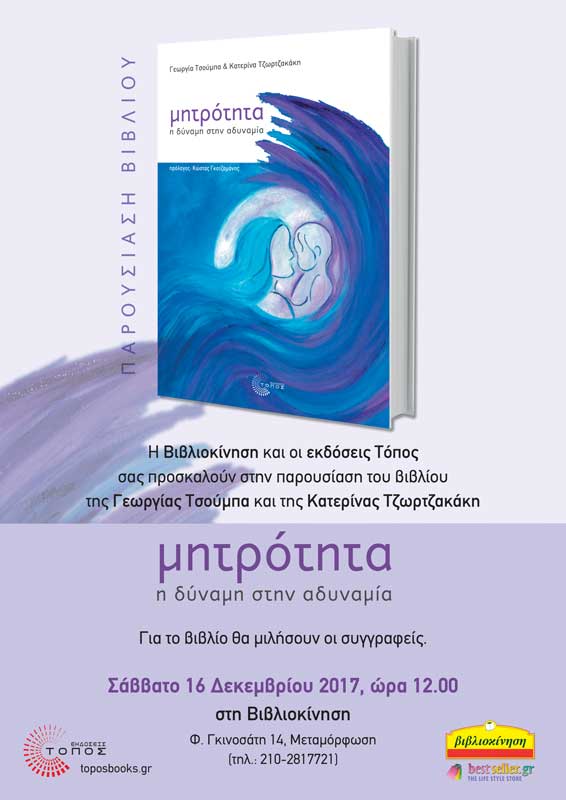 ::. "Μητρότητα: η δύναμη στην αδυναμία", παρουσίαση του βιβλίου στη Βιβλιοκίνηση Μεταμόρφωσης, Σάββατο 16 Δεκεμβρίου (15-12-2017 14:03)