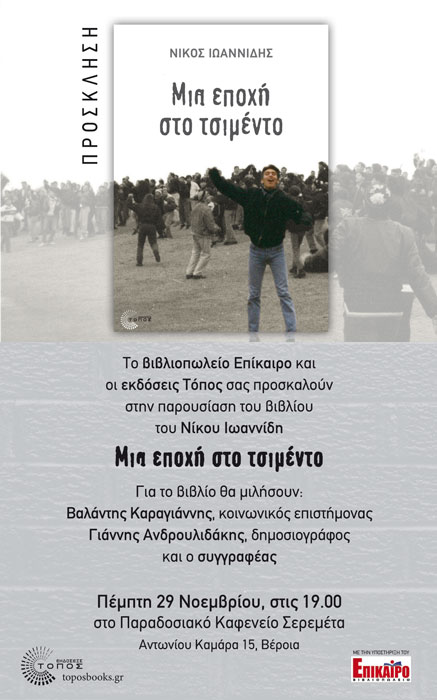 ::. ΜΙΑ ΕΠΟΧΗ ΣΤΟ ΤΣΙΜΕΝΤΟ: Παρουσίαση του βιβλίου του Νίκου Ιωαννίδη την Πέμπτη 29 Νοεμβρίου 2018 στη Βέροια (21-11-2018 15:28)