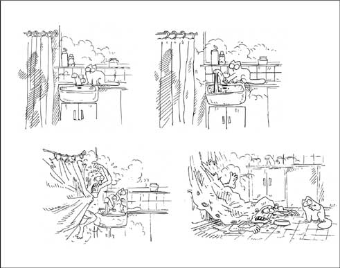 , χειμώνα καλοκαίρι, τη μέρα και τη νύχτα, με καλό ή άσκημο καιρό, μέσα κι έξω από το σπίτι, μονίμως στήνει ίντριγκες για να εξασφαλίσει εγκαίρως είτε το καθημερινό φαγητό της είτε κάποια έκτακτη λιχουδιά, μπερδεύοντας το αφεντικό της αλλά και όλα τα ζωάκια γύρω από τον μικρόκοσμο του σπιτιού του Σάιμον σε ατέλειωτες σπαρταριστές περιπέτειες.