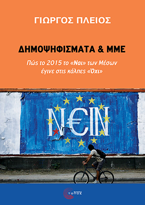 Το νέο βιβλίο του Καθηγητή του Τμήματος Επικοινωνίας και ΜΜΕ του Εθνικού και Καποδιστριακού Πανεπιστημίου Αθηνών Γιώργου Πλειού μελετά τον ρόλο των ΜΜΕ στα σύγχρονα δημοψηφίσματα. Εστιάζει στο ελληνικό δημοψήφισμα του 2015 το οποίο ο συγγραφέας θεωρεί το δεύτερο ελεύθερο μετά το τέλος του εμφυλίου πολέμου μαζί, προφανώς, με αυτό ταυ Δεκεμβρίου ταυ 1974 όπσυ τέθηκε τσ ερώτημα της βασιλευμένης ή της αβασίλευτης δημοκρατίας. Τα δύσ άλλα πσυ είχαν προηγηθεί, δηλαδή αυτό ταυ 1968 και ταυ 1973, πραγματοποιήθηκαν την περίοδο της δικτατορίας των συνταγματαρχών με ότι αυτό συνεπάγεται. Είχε βέβαια, μετά την απελευθέρωση, πραγματοποιηθεί και τσ δημοψήφισμα του Σεπτέμβρη του 1946 με θέμα την επιστροφή του έκπτωτου Γεωργίου ή την αβασίλευτη δημοκρατία, το οποίο και αυτό δεν ήταν καθόλου ελεύθερο, εφόσον οι συνθήκες στις οποίες διεξήχθη ήταν συνθήκες τρομοκρατίας.