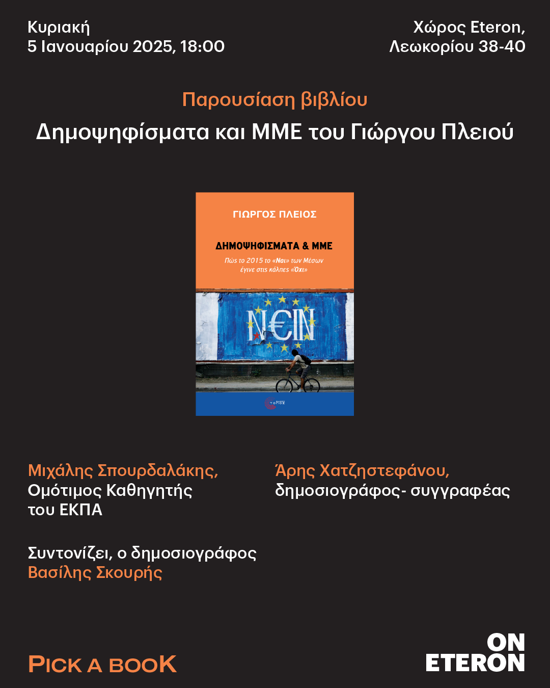 ::. Κυριακή 5/01 Eteron: ''Δημοψηφίσματα και ΜΜΕ'' παρουσίαση του βιβλίου του Γιώργου Πλειού (31-12-2024 13:19)