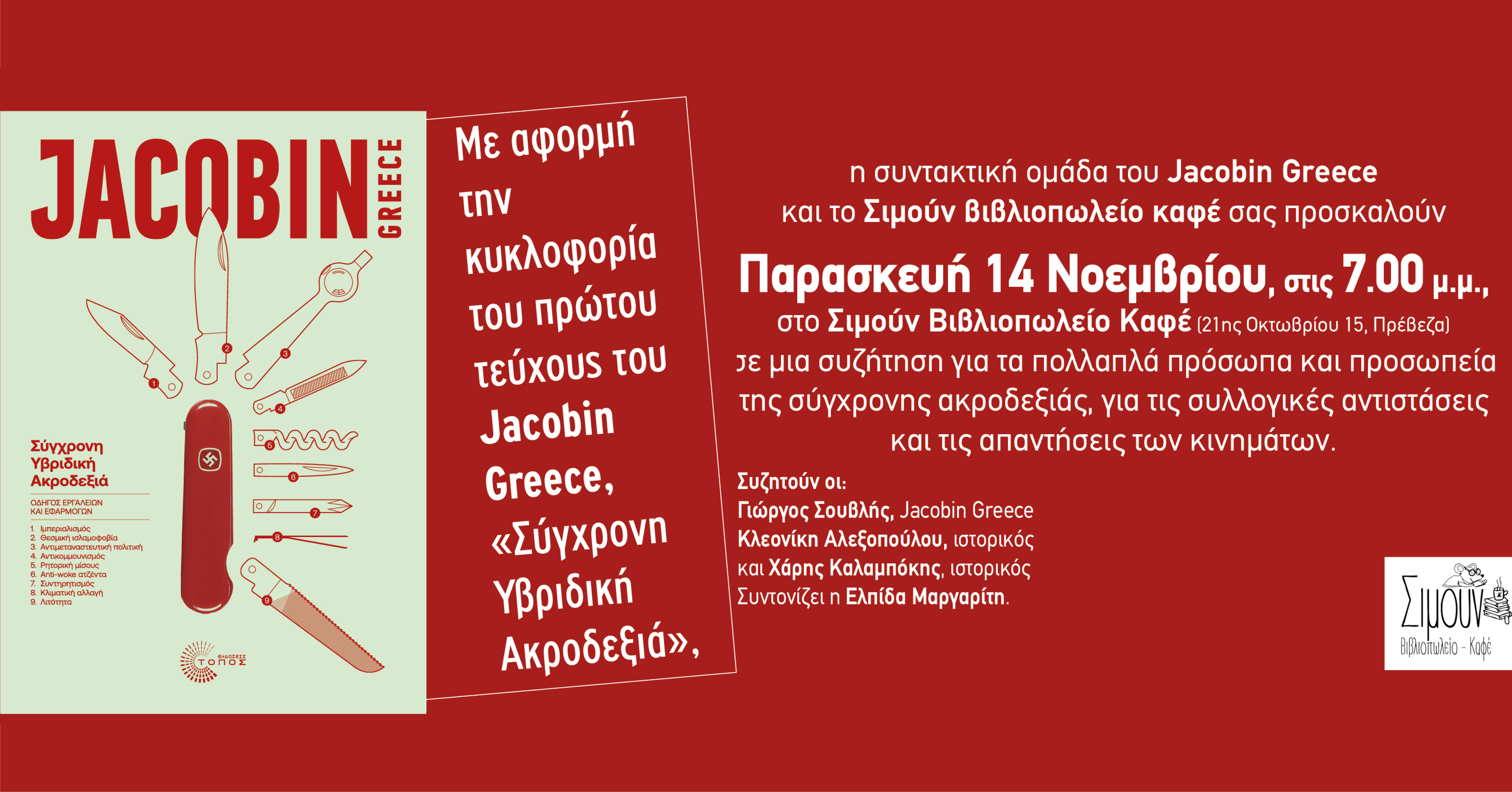 ::. Παρασκευή 14 Νοεμβρίου, Πρέβεζα: Συζήτηση με αφορμή το πρώτο βιβλίο της σειράς Jacobin Greece "Σύγχρονη Υβριδική Ακροδεξιά" (23-10-2025 11:05)