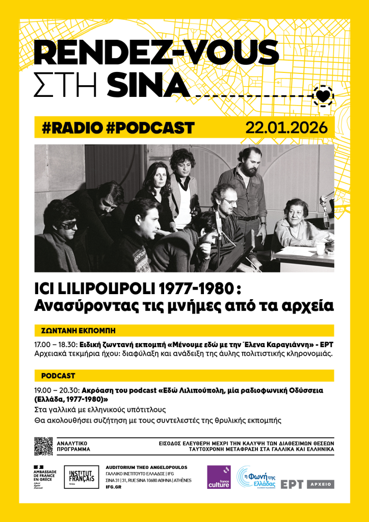 Με αφορμή το ηχητικό ντοκιμαντέρ του ραδιοφωνικού σταθμού France Culture για τη θρυλική ραδιοφωνική σειρά «Εδώ Λιλιπούπολη», το Γαλλικό Ινστιτούτο Ελλάδος προσκαλεί το κοινό, την Πέμπτη 22 Ιανουαρίου 2026, σε μία ειδική βραδιά συζήτησης και ακρόασης, που θα ενθουσιάσει τους λάτρεις του ραδιοφώνου.