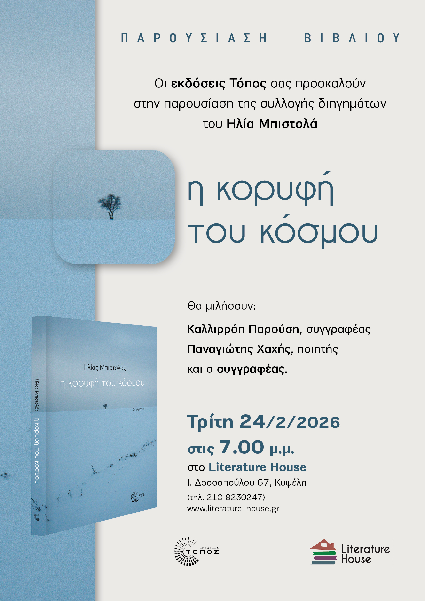 ::. Τρίτη 24 Φεβρουαρίου, Κυψέλη: "Η κορυφή του κόσμου" παρουσίαση του νέου βιβλίου του Ηλία Μπιστολά (11-02-2026 15:28)