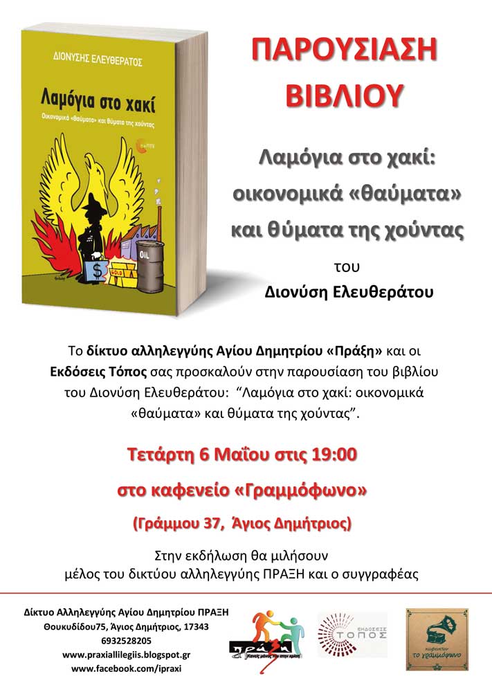 ::. "Λαμόγια στο χακί": Παρουσίαση του βιβλίου του Διονύση Ελευθεράτου την Τετάρτη 6 Μαϊου στον Αγ. Δημήτριο (04-05-2015 12:53)