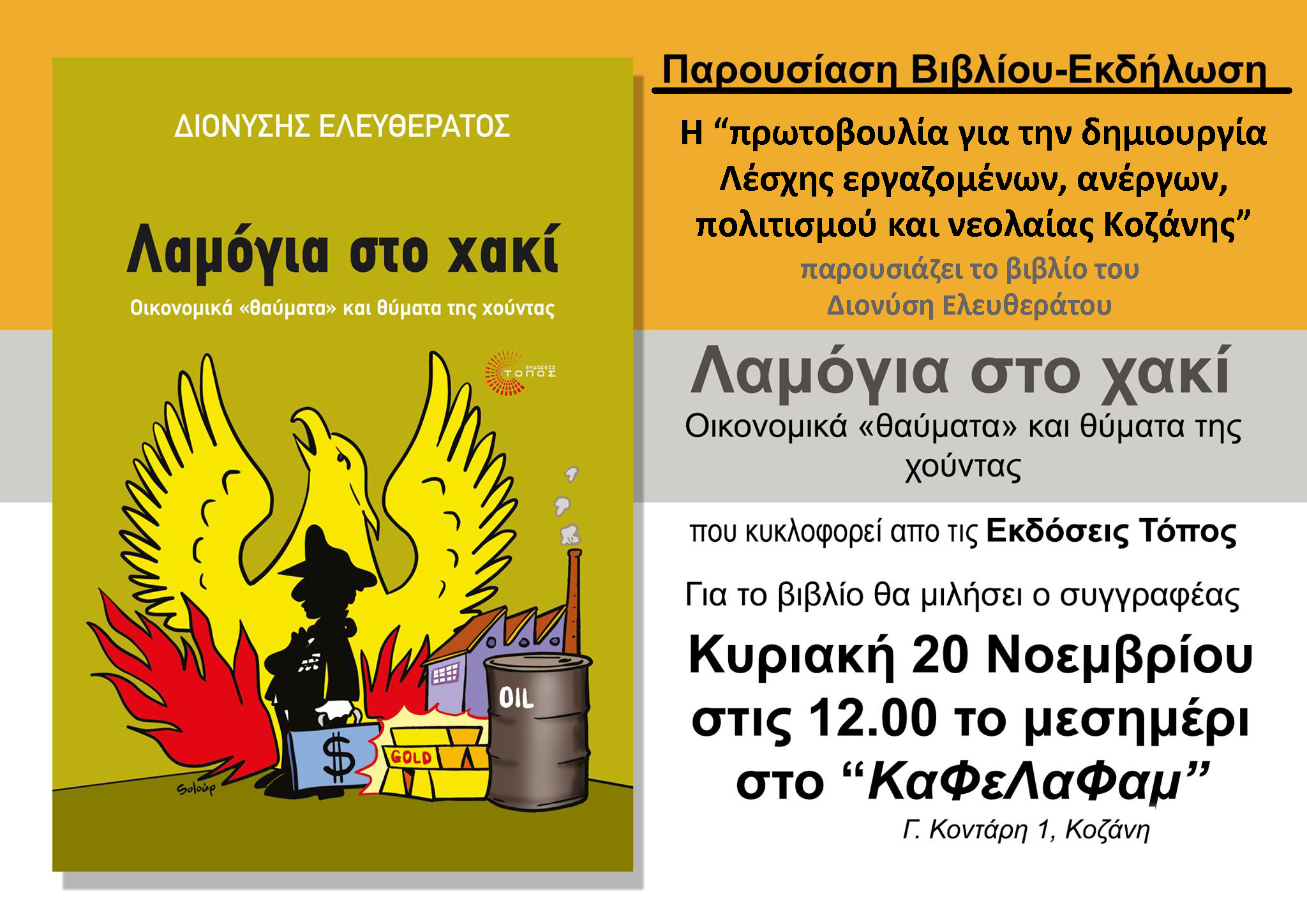 ::. Κυριακή 20 Νοεμβρίου: ''Λαμόγια στο χακί'' παρουσίαση του βιβλίου του Διονύση Ελευθεράτου στην Κοζάνη (09-11-2016 11:45)