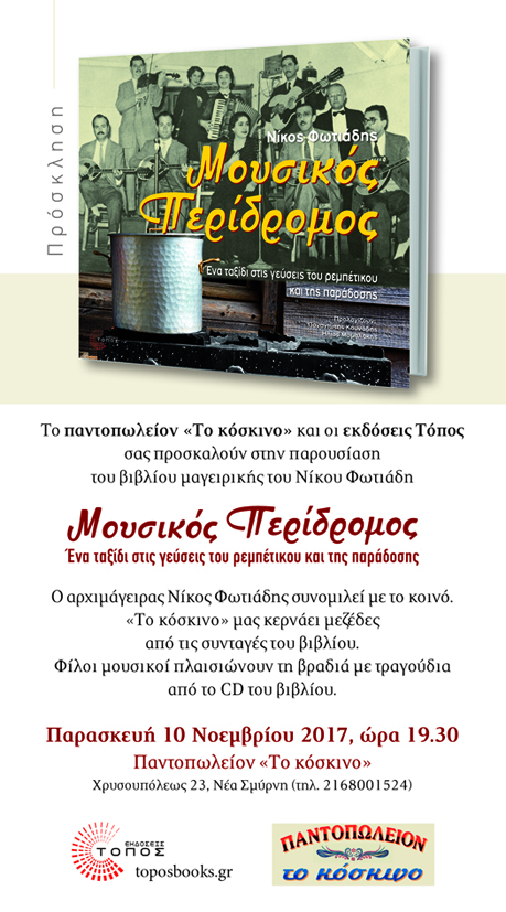 ::. "Μουσικός Περίδρομος": Παρουσίαση του λευκώματος-βιβλίου μαγειρικής του Νίκου Φωτιάδη την Παρασκευή 10 Νοεμβρίου στη Νέα Σμύρνη (08-11-2017 10:35)