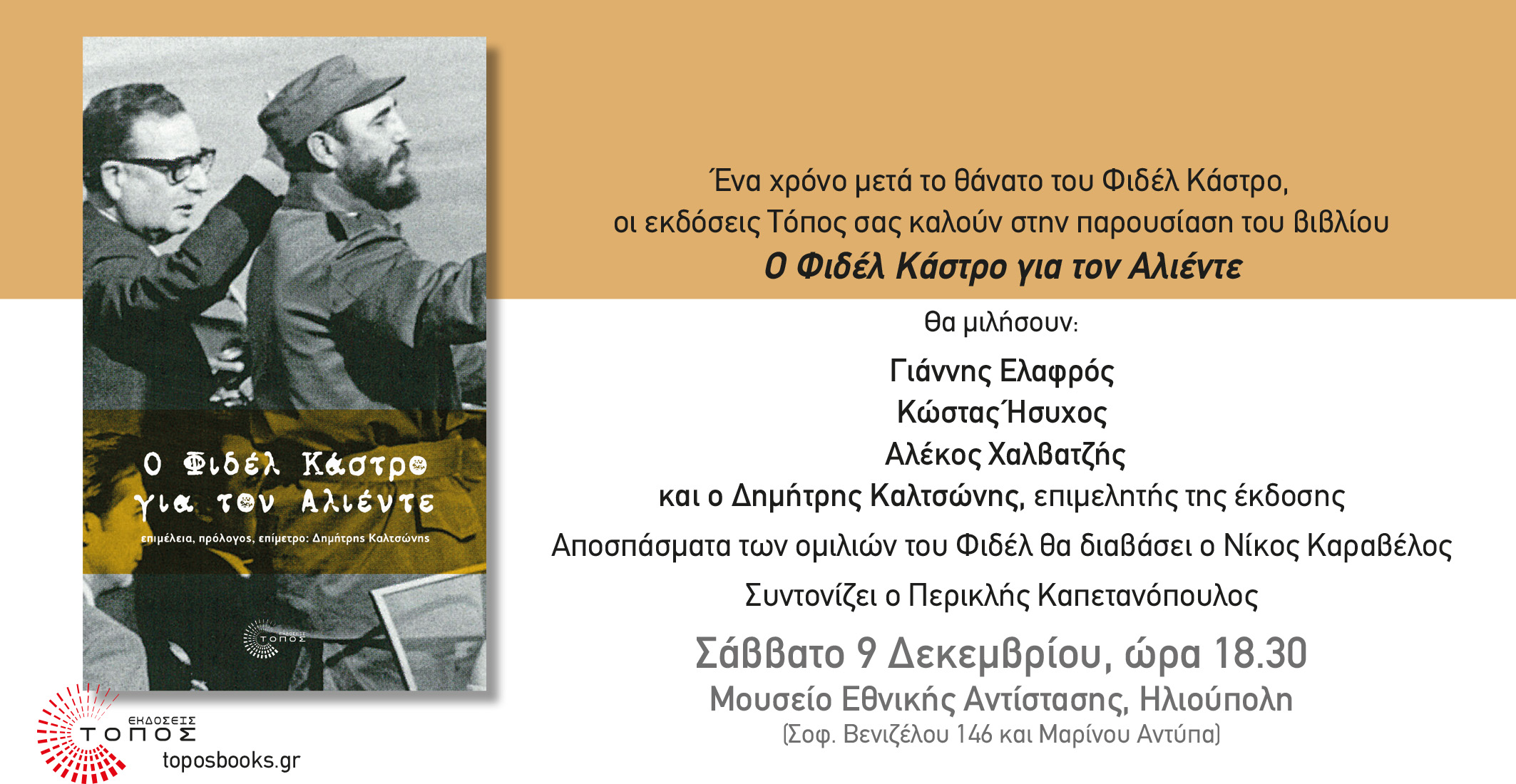 ::. Σάββατο 9 Δεκεμβρίου: ''Ο Φιδέλ Κάστρο για τον Αλιέντε'' παρουσίαση του βιβλίου στην Ηλιούπολη (22-11-2017 11:37)
