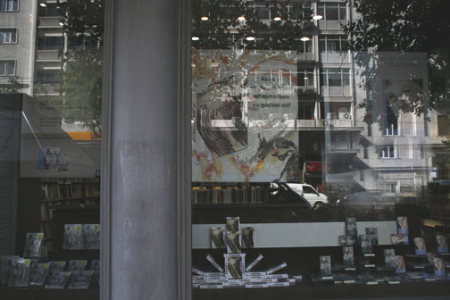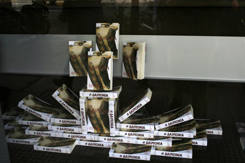 Το φως, σήμερα, τελευταία μέρα του Οκτώβρη, με την υγρή ζέστη στα ύψη, έκανε τις προθήκες του «Ελευθερουδάκη» με ΤΑ ΔΑΙΜΟΝΙΑ σε πρώτο πλάνο, να έχουν κάτι από την απόκοσμη «υγρή» ατμόσφαιρα του μυθιστορήματος (στις σελίδες που αναφέρονται στον Μεσαίωνα). Μια ματιά στα ενσταντανέ του φωτογράφου μας θα σας πείσει.